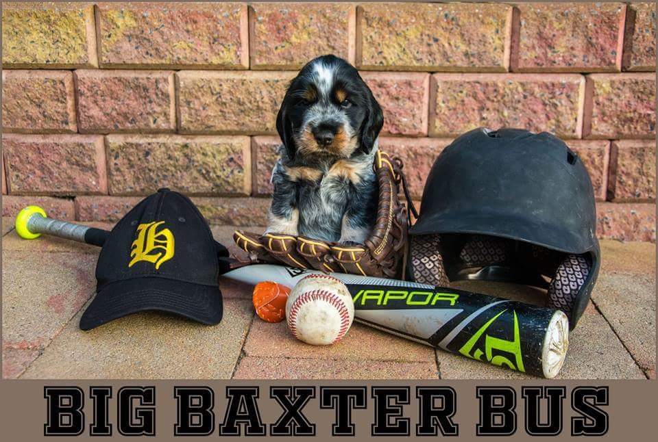 Baxter is geboren in Heerhugowaard, de plaats waar wij 15 jaar hebben gewoond. Wij waren daar nauw betrokken bij de honk- en softbalvereniging B.C. The Herons. Vandaar een foto met spelmateriaal van The Herons.